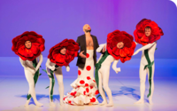 The troupe playfully blurs the lines between masculine and feminine in a manifesto for freedom—of gender, but also of artistic expression. Dressed in ruffled gowns, tutus, and other extravagant costumes, they parody Carmen, the ultimate icon of femininity.
